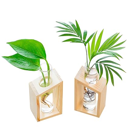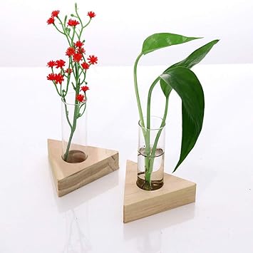 Ivolador Crystal Glass Test Tube Vase In Wooden Stand Flower Pots For Hydroponic Plants Home Garden Decoration